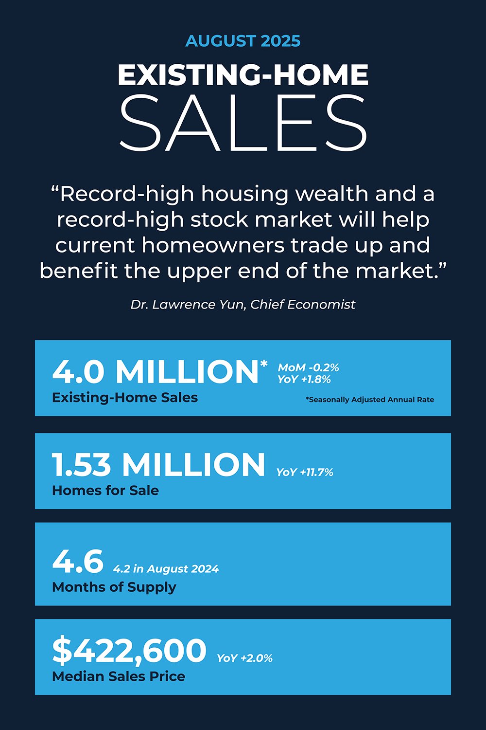 The median existing-home price in August reached $422,600, up 2.0% from August 2024. This marks the 26th consecutive month of year-over-year price gains.